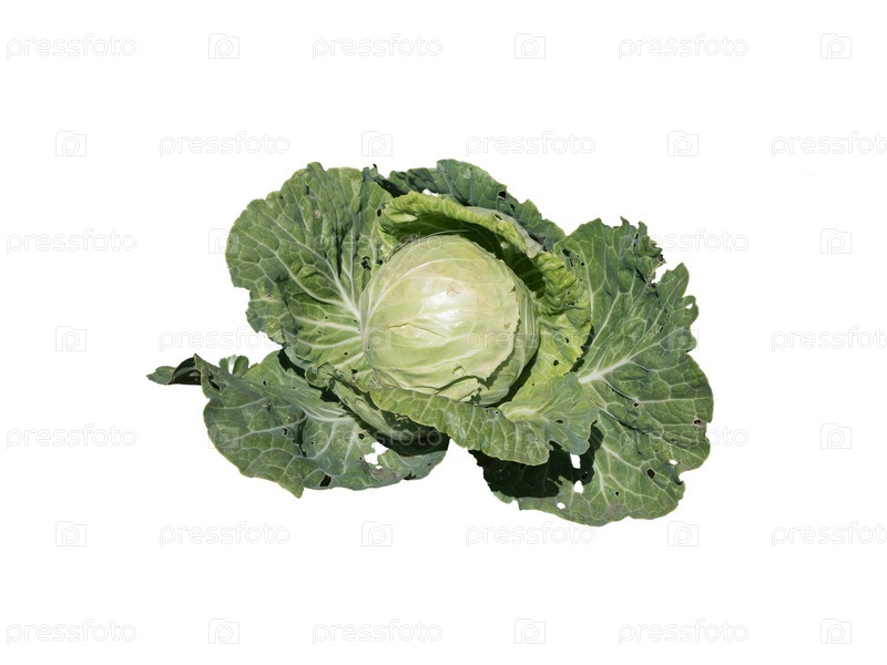 Зеленая спелая белокочанная капуста изолирована на белом фоне