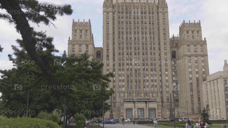 МОСКВА, РОССИЯ - 27 июля 2022 года: Главное здание Министерства иностранных дел - один из семи знаменитых небоскребов, построенных в сталинском стиле, 27 июля 2022 года в Москве, Россия