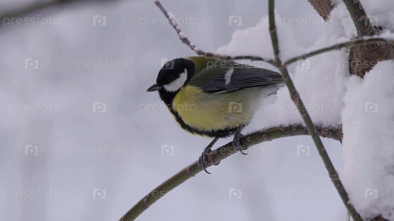 Птицы под Москвой, желтая овсянка на ветке дерева