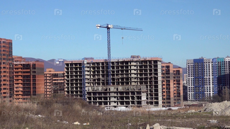 Новороссийск Два грузоподъемных крана и строящиеся здания