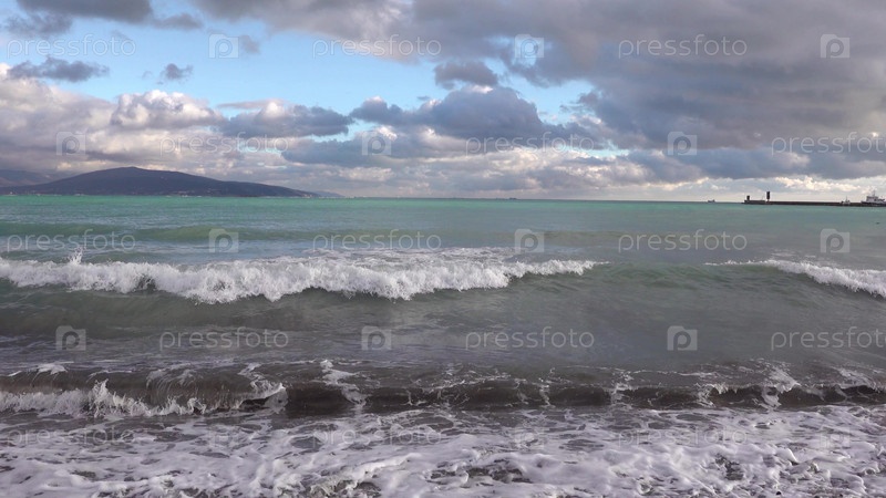 Вид на бурный морской пейзаж волн и Черного моря