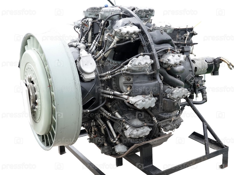 Авиационный автомобильный поршневой двигатель с расположением цилиндров изолирован на белом фоне