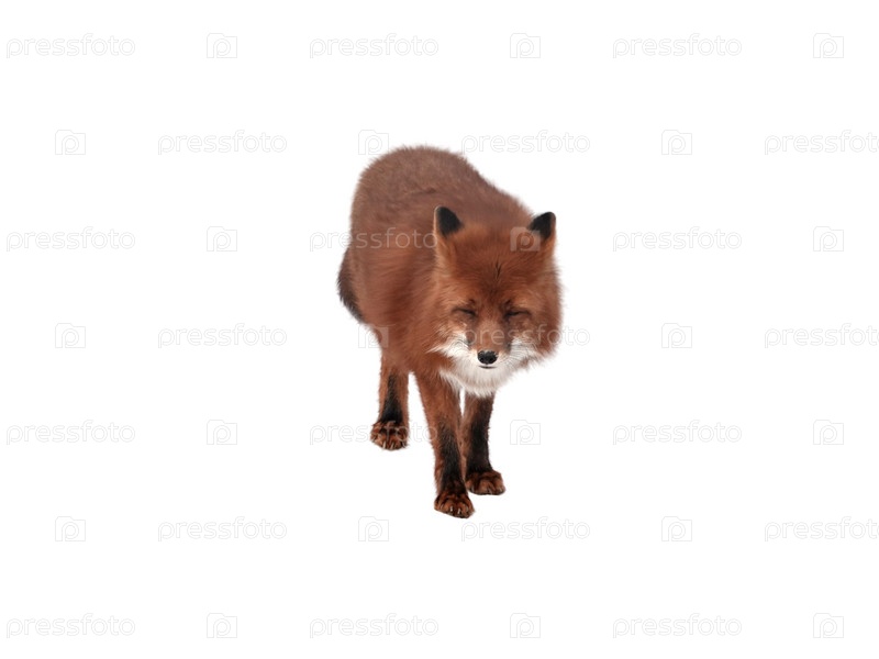 Портрет рыжей лисы, стоящей изолированно на белом фоне