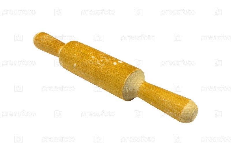 Деревянная скалка на белом фоне