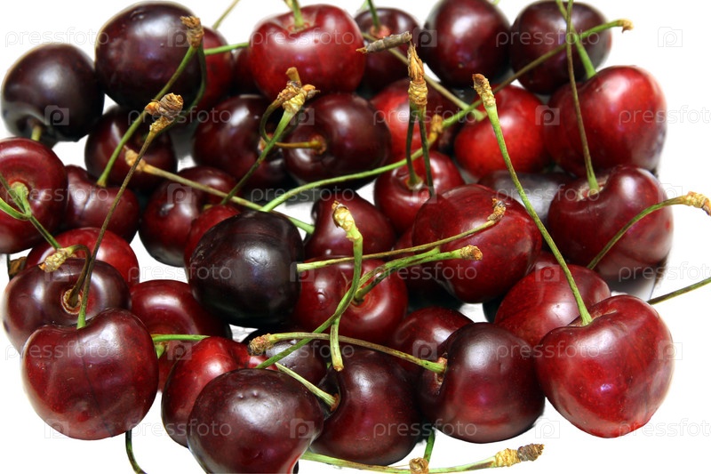 Рассеяние спелой вишни на белом фоне