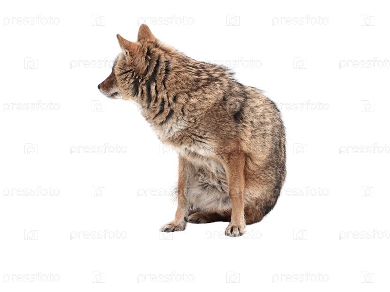 Красный шакал стоит изолированно на белом фоне