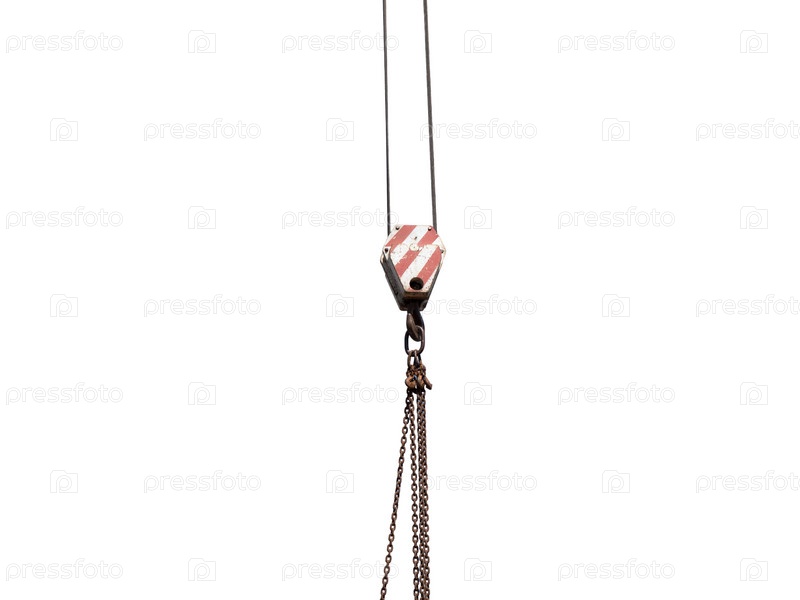 Стальной крюк крана с кабелем, изолированным на белом