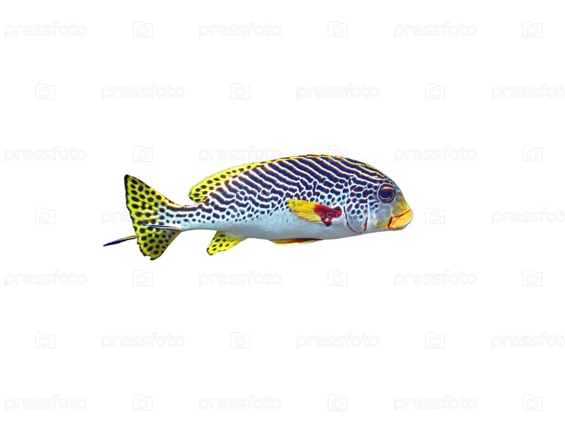 Экзотические морские рыбы на белом изолированном фоне с обтравочной дорожкой