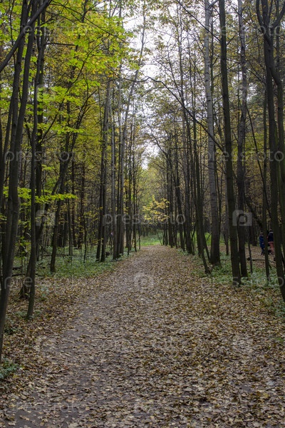 Вид на аллею парка в осенний сезон