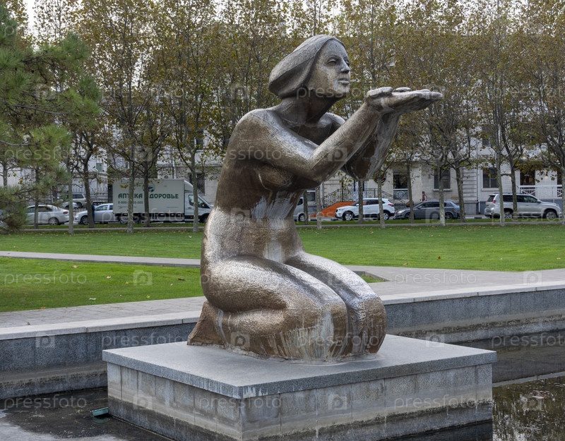 Новороссийск, Россия - 18.08.2023. Скульптура "Подача воды и дом с башенкой", Черное море, порт, Краснодарский край, Новороссийск