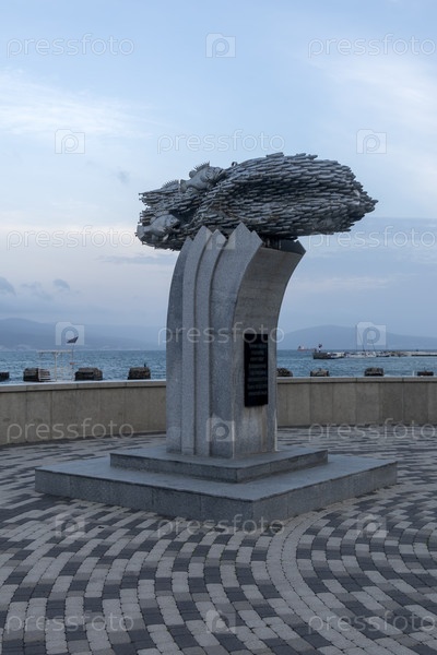 Новороссийск, Россия - 28.08.2023 Памятник европейскому анчоусу или рыбе Хамса в Новороссийске