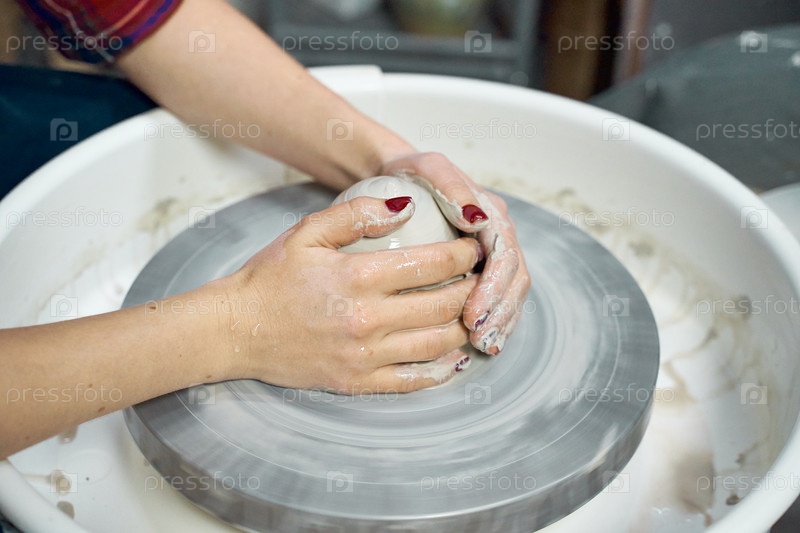 Женщина делает керамическую посуду на круге, руки крупным планом. Концепция для женщины-фрилансера, бизнеса, творческого хобби. Дополнительный заработок, подработка