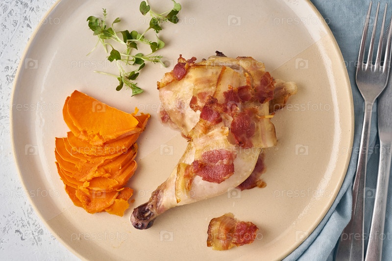 Здоровая сбалансированная чистая еда без глютена со сладким картофелем и беконом