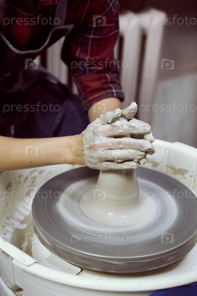 Женщина делает керамическую посуду на круге, руки крупным планом. Концепция для женщины-фрилансера, бизнеса, творческого хобби. Дополнительный заработок, подработка