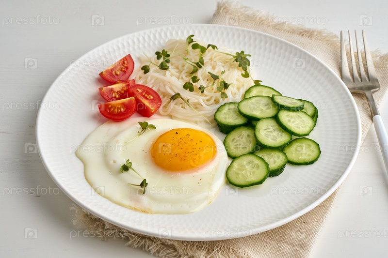 Безглютеновый завтрак - омлет с вишней и огурцами, диета Dash Fodmap, здоровое сбалансированное питание