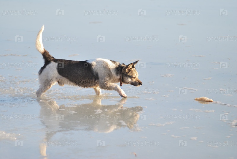 Собака на весеннем льду Иртыша