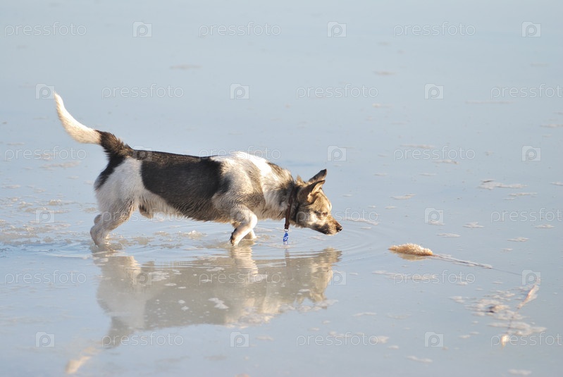 Собака на весеннем льду Иртыша
