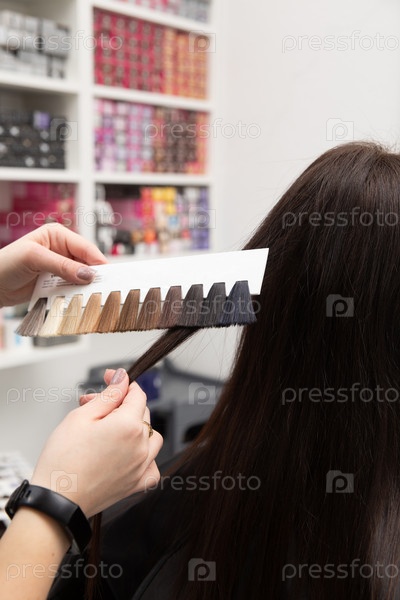Парикмахер выбирает цвет краски, используя палитру красок для волос