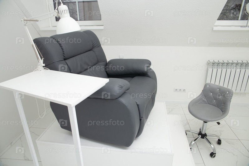 Интерьер светлого современного маникюрного салона без людей