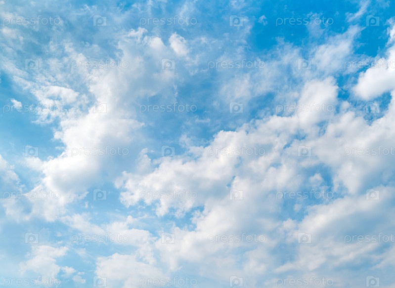 Голубое небо и красивые белые облака. Яркий солнечный день. Фон с местом для копирования текста