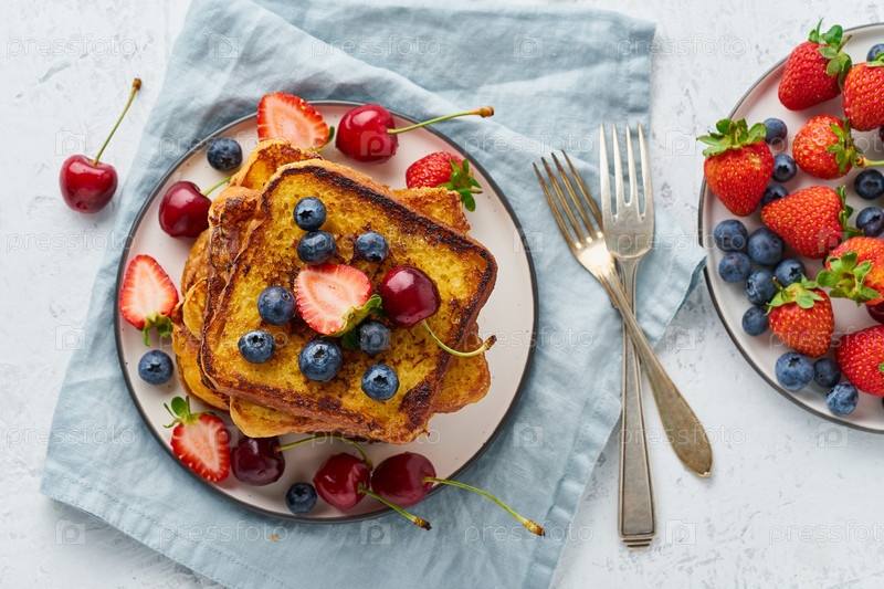 Полезные французские тосты с ягодами, удобная стопка тостов, домашняя бриошь