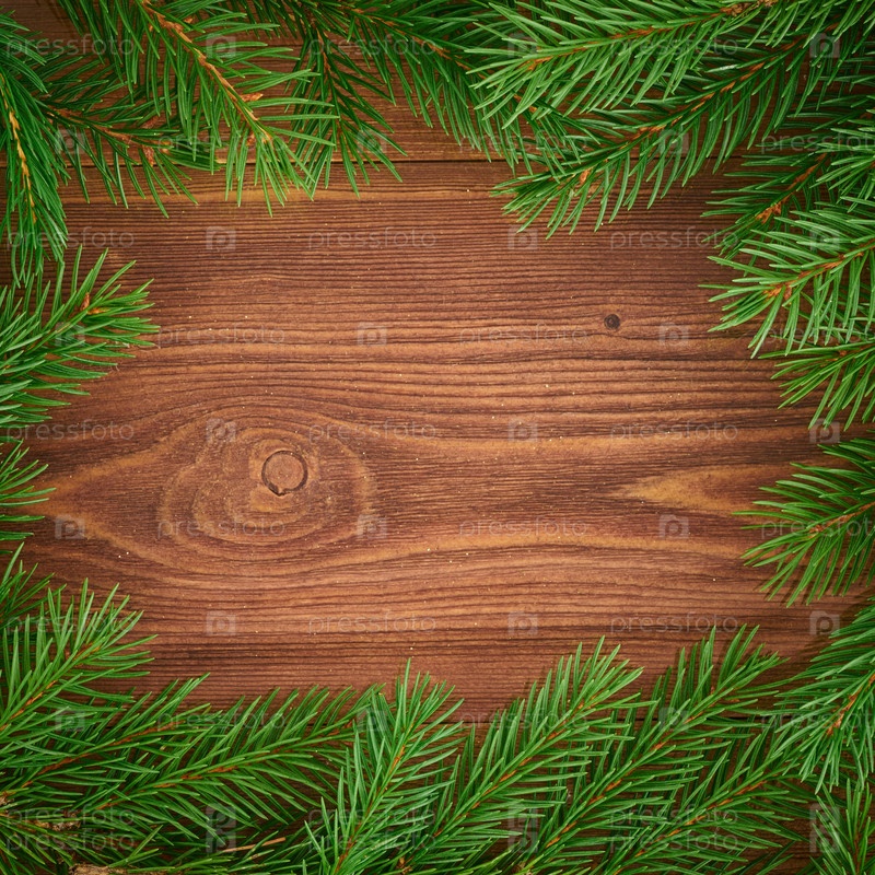 Рождество и счастливый Новый год темно-коричневый фон. Вид сверху, пространство для копирования, деревянный деревенский стол, еловые ветки, крупный план