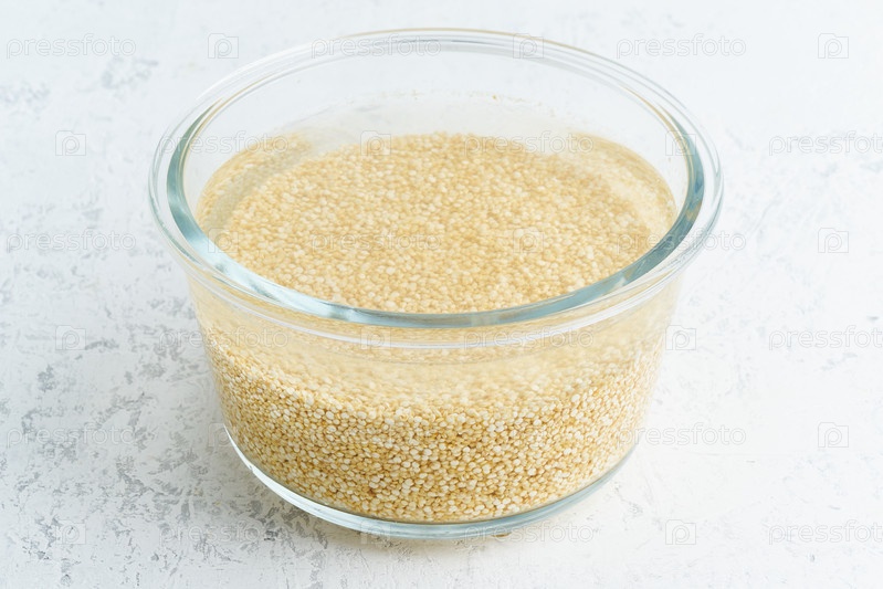 Замачивание круп киноа в воде для ферментации крупы и нейтрализации фитиновой кислоты
