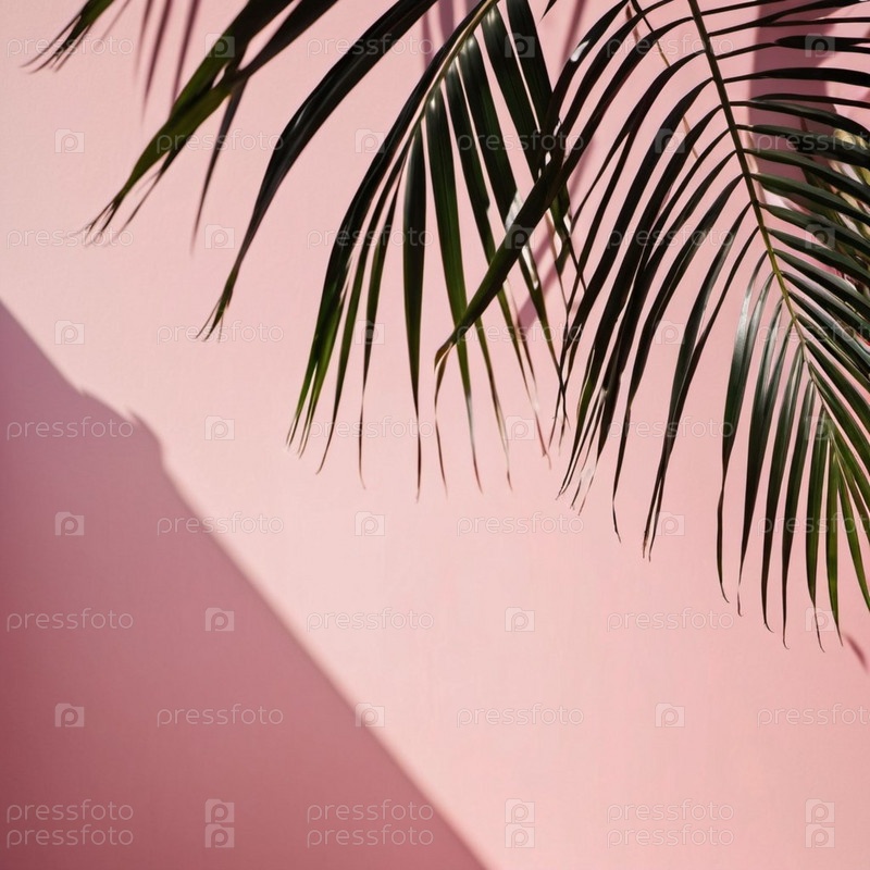 Размытая расфокусированная тень от пальмовых листьев на стене. Минималистичный красивый летний или весенний фон для презентации продукта. Тема путешествий и пляжного отдыха. Длинные узкие листья