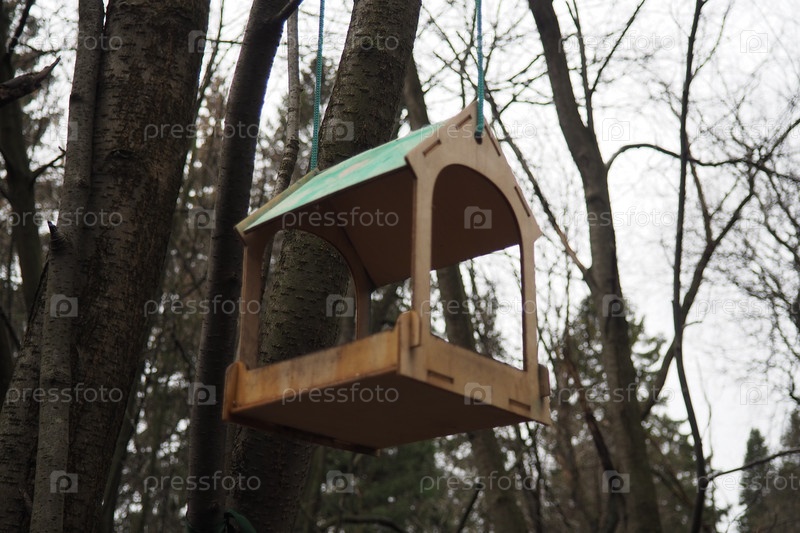 Подвесная самодельная кормушка или платформа для кормления птиц и белок зимой и весной в голодное время. Кормушки для птиц и белок в лесу или городском парке