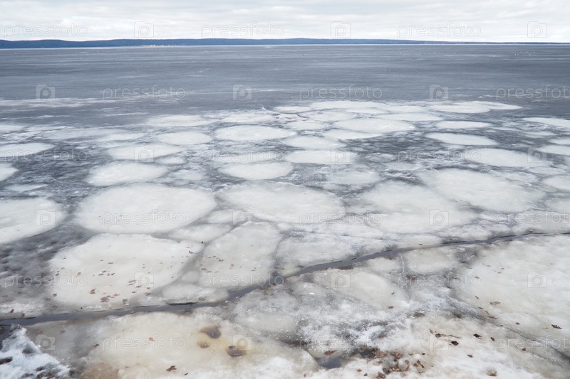 Ледоход весной на Онежском озере, Карелия. Опасный тонкий весенний лед в апреле. Совокупные скопления мелкокристаллических зерен. Открытие малых озер, прудов и водохранилищ. Разбитые льдины