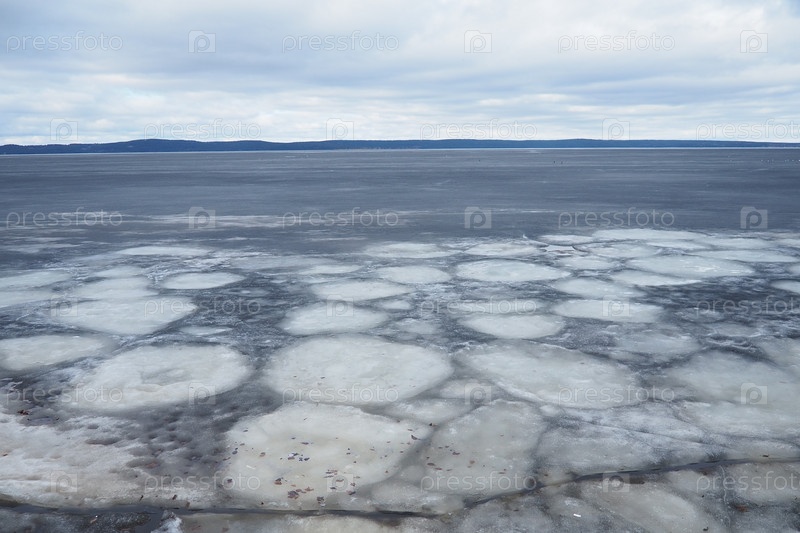 Ледоход весной на Онежском озере, Карелия. Опасный тонкий весенний лед в апреле. Совокупные скопления мелкокристаллических зерен. Открытие малых озер, прудов и водохранилищ. Разбитые льдины