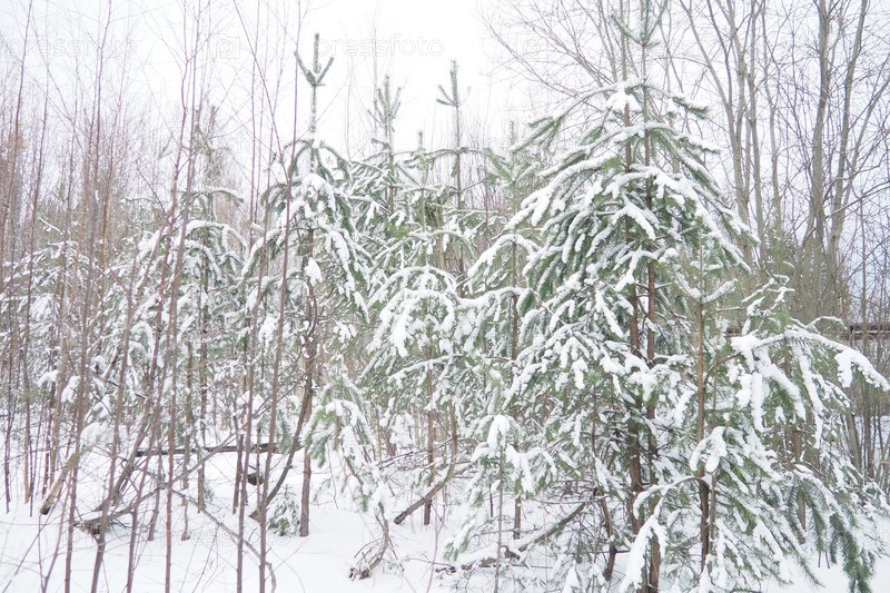 Сосновый лес зимой днем при сильных морозах, Карелия. Снег на хвойных ветвях. Морозный солнечный антициклон. Сосна обыкновенная Pinus sylvestris сосновое растение Pinus из Pine Pinaceae