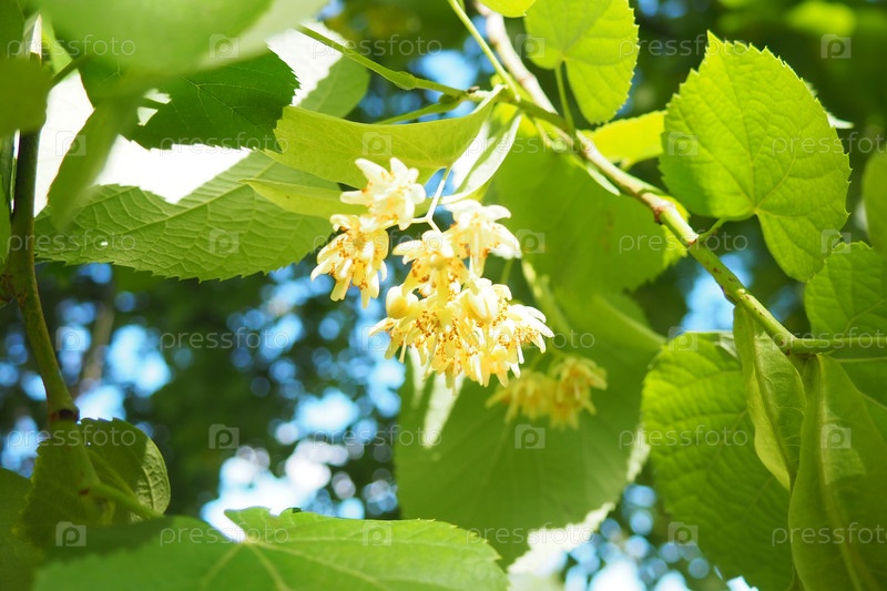 Липа европейская, липа североамериканская. Соцветия липы на ветке