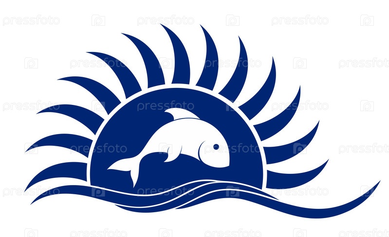 Логотип солнца и моря с рыбами