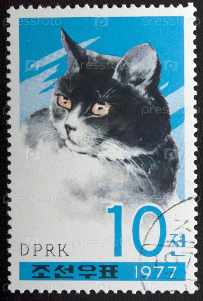 Почтовая марка с выпуском Северная Корея 1977 год Домашняя кошка Cat (Felis silvestris ca-tus)