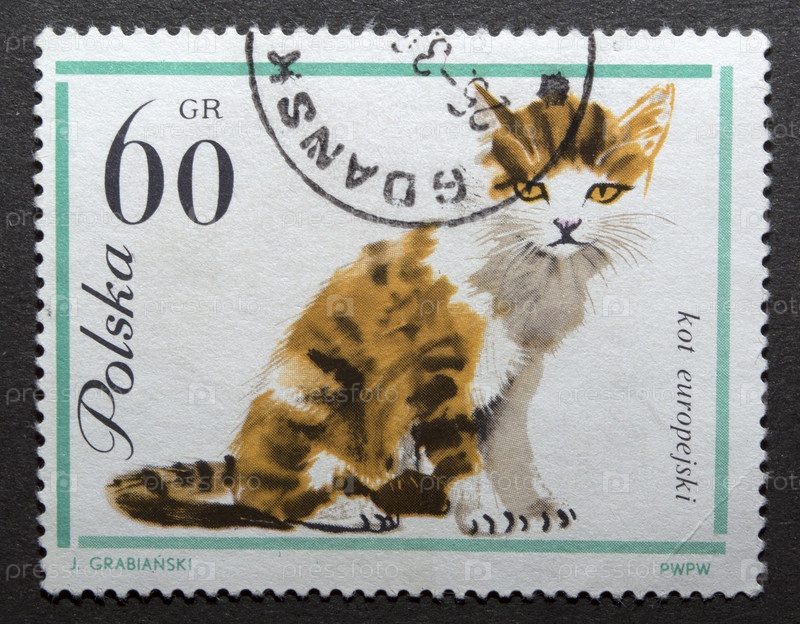 Почтовая марка Польши 1964 года. породы кошек. домашняя кошка (Felis silvestris catus)