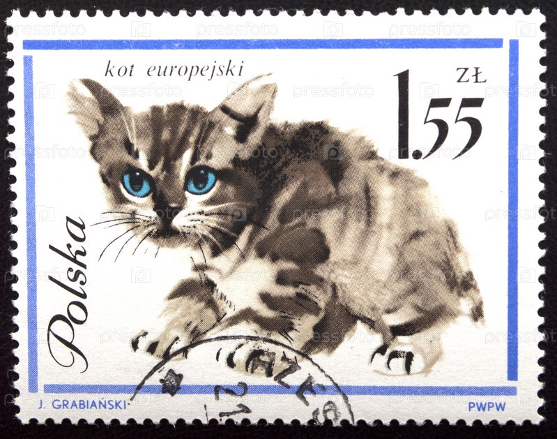 Почтовая марка Польши 1964 года. породы кошек. домашняя кошка (Felis silvestris catus)