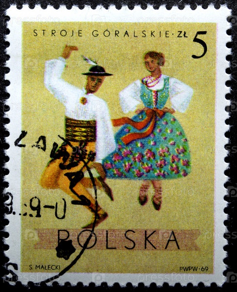 Почтовая марка с гашением Польша 1969 год. Народные костюмы горцев