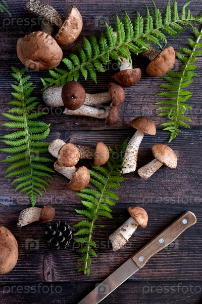 Гриб Cep или Boletus, растущий на пышно-зеленой мхе в лесу, вид под низким углом