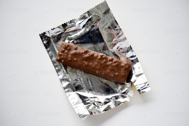 Сладкая шоколадка в упаковке. Вафельный шоколадный батончик