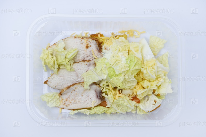 Салат Цезарь с мясом и овощами в пластиковом контейнере