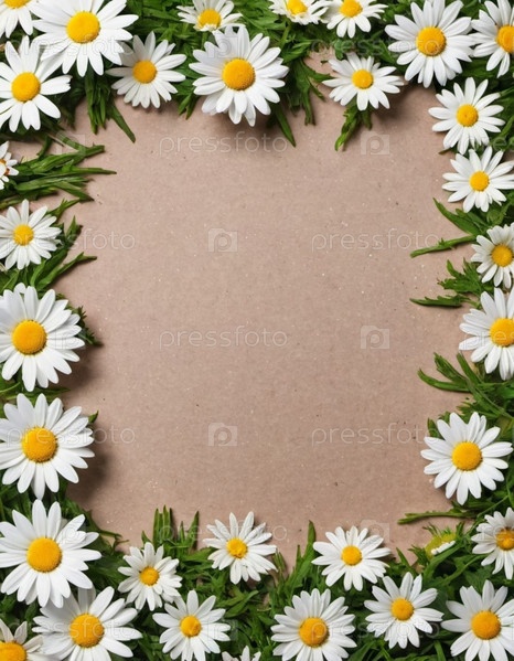 Белые цветы ромашки с желтыми центрами расположены по кайме на черном фоне. Ромашки свежие и яркие. Края рамки. Изображение обеспечивает простой и естественный фон для текста или элементов дизайна