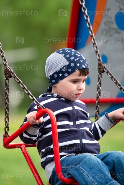 Маленький мальчик катается на качелях