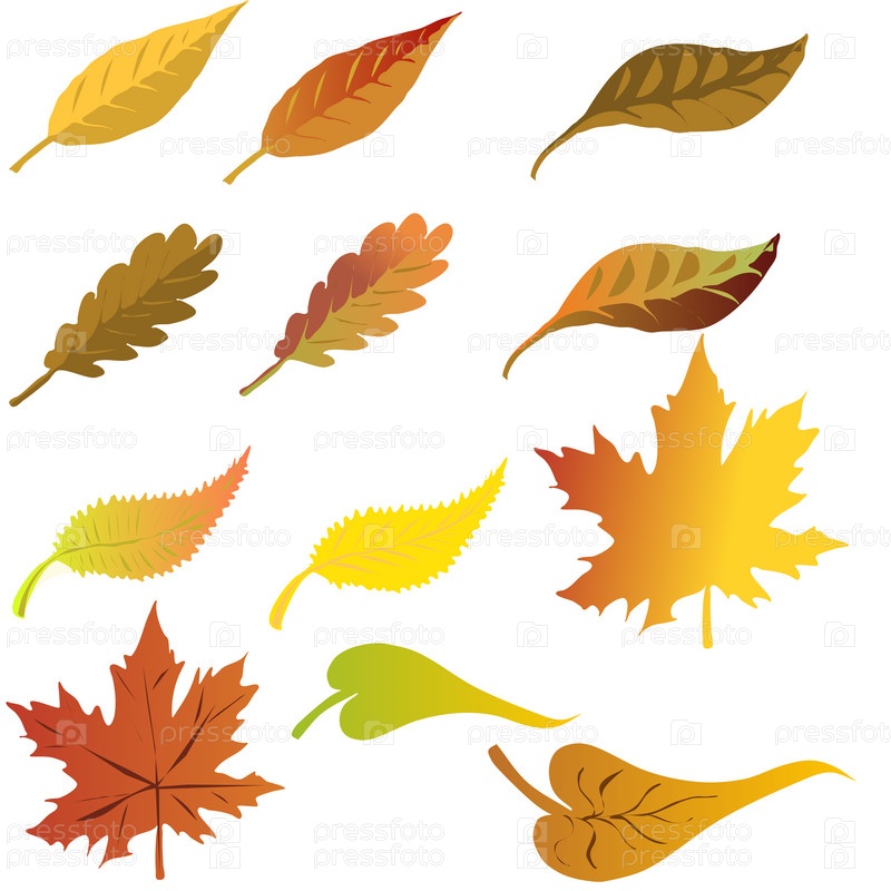Набор графических ресурсов различных типов листьев дерева. кленовый дуб и другие обычные листья