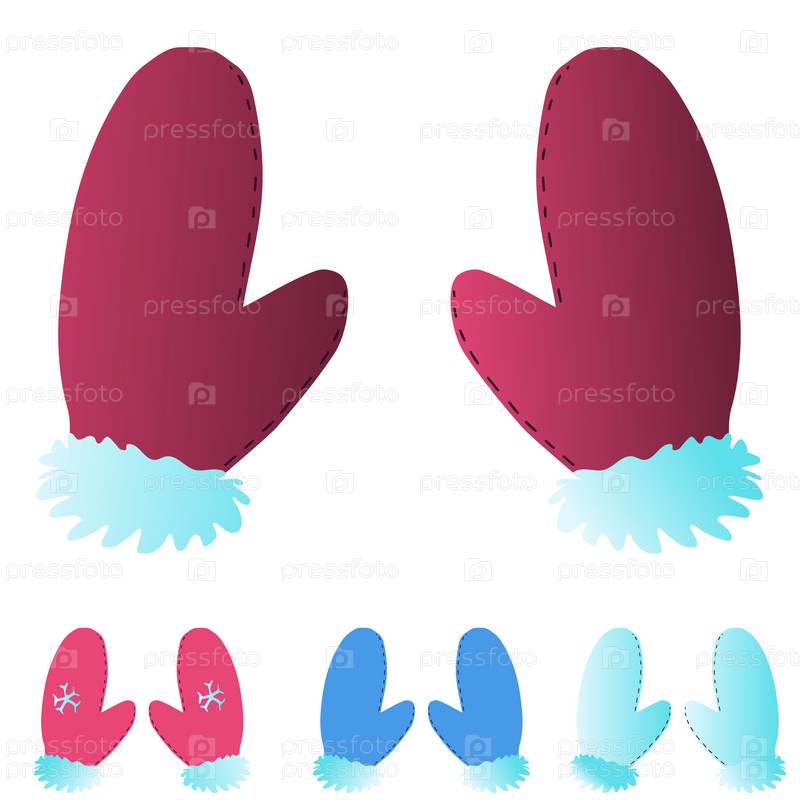 Несколько разных цветов зимних перчаток с мехом и снежинками