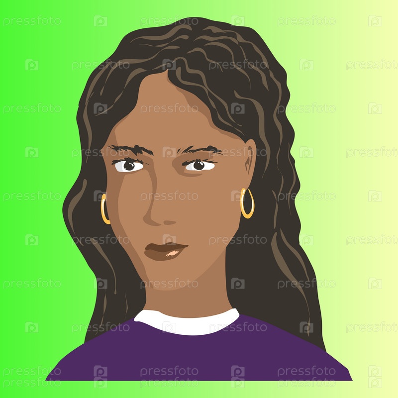 Нарисованная от руки девушка-аватар с длинными темными волосами и темной кожей