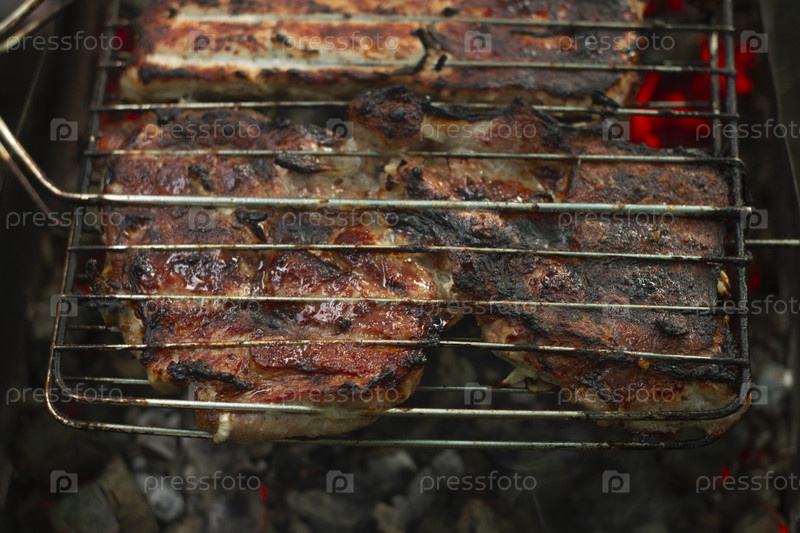 Жаренное на углях мясо. Барбекю на свежем воздухе
