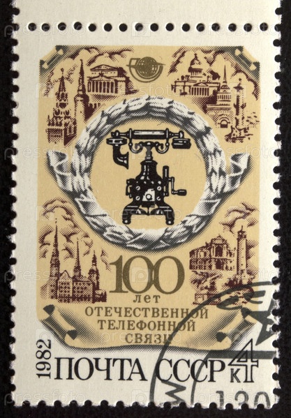 Почтовая марка с гашением СССР 1982 год. 100 лет отечественной телефонной связи