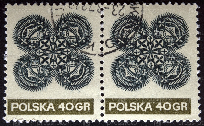 Почтовая марка с гашением Польша 1971 год. Вырезка из бумаги Казимежа Дольни от Игнация Добжинского
