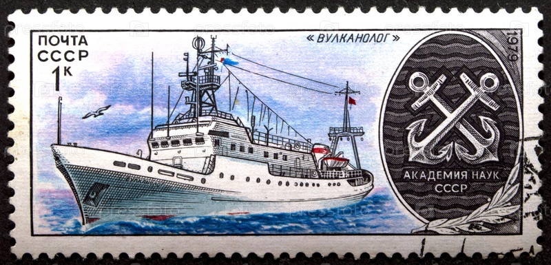 Почтовая марка с гашением СССР 1979 год. Судно «Вулканолог». Научно-исследовательский флот СССР